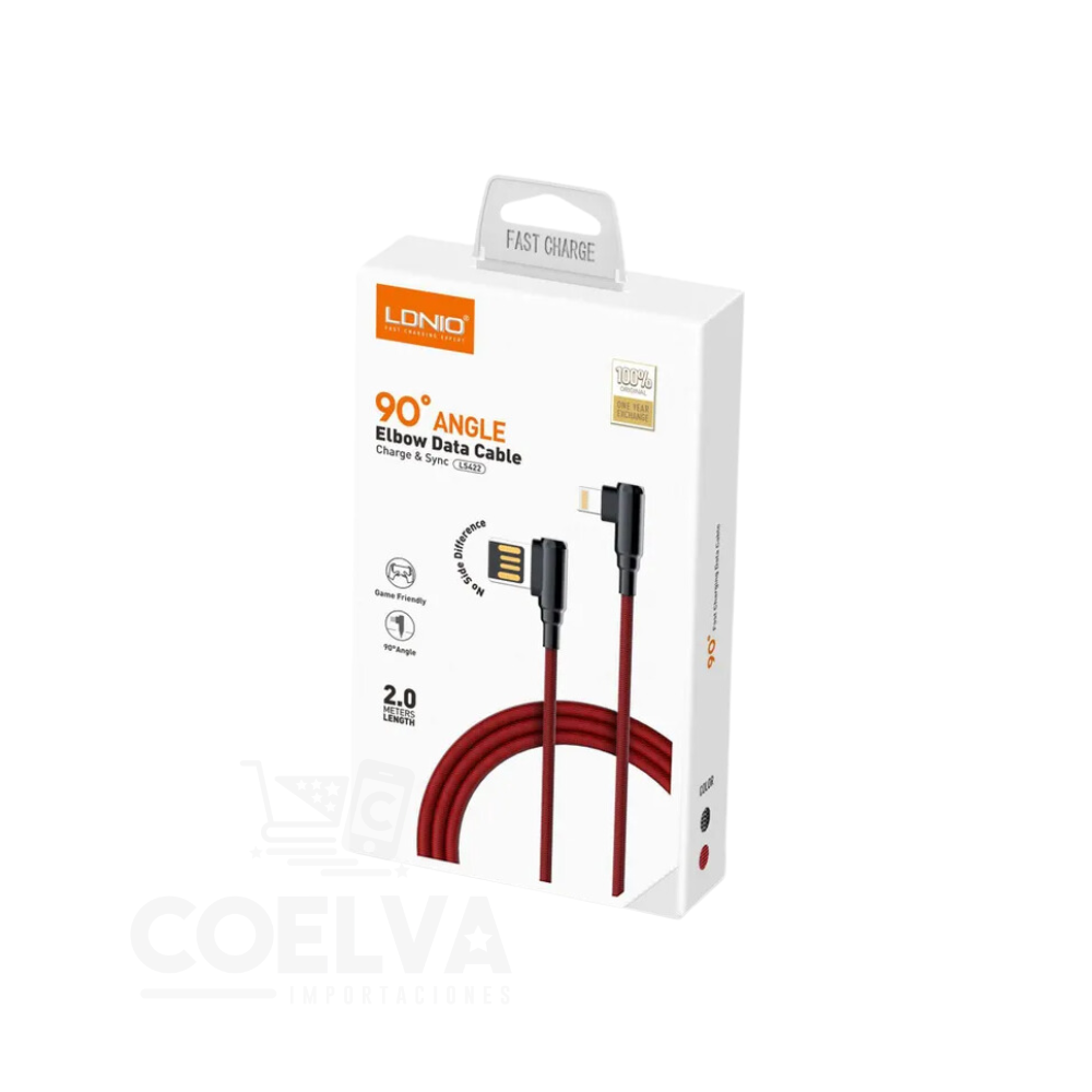 LDNIO LS422 Lightning 90° Angle Cable Data Conector Tipo Codo